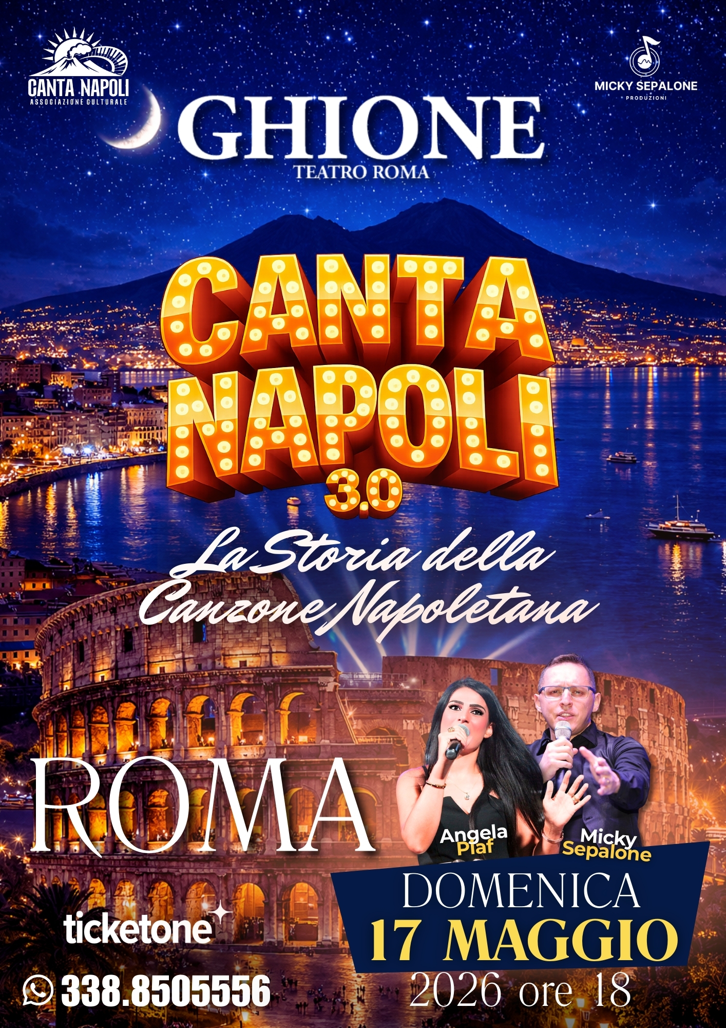 Micky Sepalone e Angela Piaf presentano Canta Napoli 3.0, un capitolo tutto nuovo che trasforma il classico tributo alla tradizione in una vera e propria sfida al futuro. Non si tratta solo di un aggiornamento, ma di un salto evolutivo che nasce dalla voglia costante di sperimentare e non restare mai fermi. In questa nuova release, i brani che tutti amiamo vengono riarrangiati in modo inedito e audace, capaci di vestire la melodia napoletana con sonorità moderne e internazionali che sorprendono fin dalla prima nota. La scaletta è stata completamente riscritta per creare un flusso narrativo dinamico, un viaggio musicale senza pause dove l'innovazione incontra il calore della nostra terra. Ma la vera anima di questo upgrade siete voi: Micky e Angela hanno immaginato questo show come un’opera collettiva, è il pubblico a fare il concerto con la band. La barriera tra palco e platea si sgretola, trasformando ogni live in un’esperienza condivisa dove la vostra energia e le vostre voci diventano lo strumento più importante di tutti. È un invito a riscoprire la Storia della Canzone Napoletana con orecchie nuove, sentendosi parte integrante di una rivoluzione sonora senza fine.
