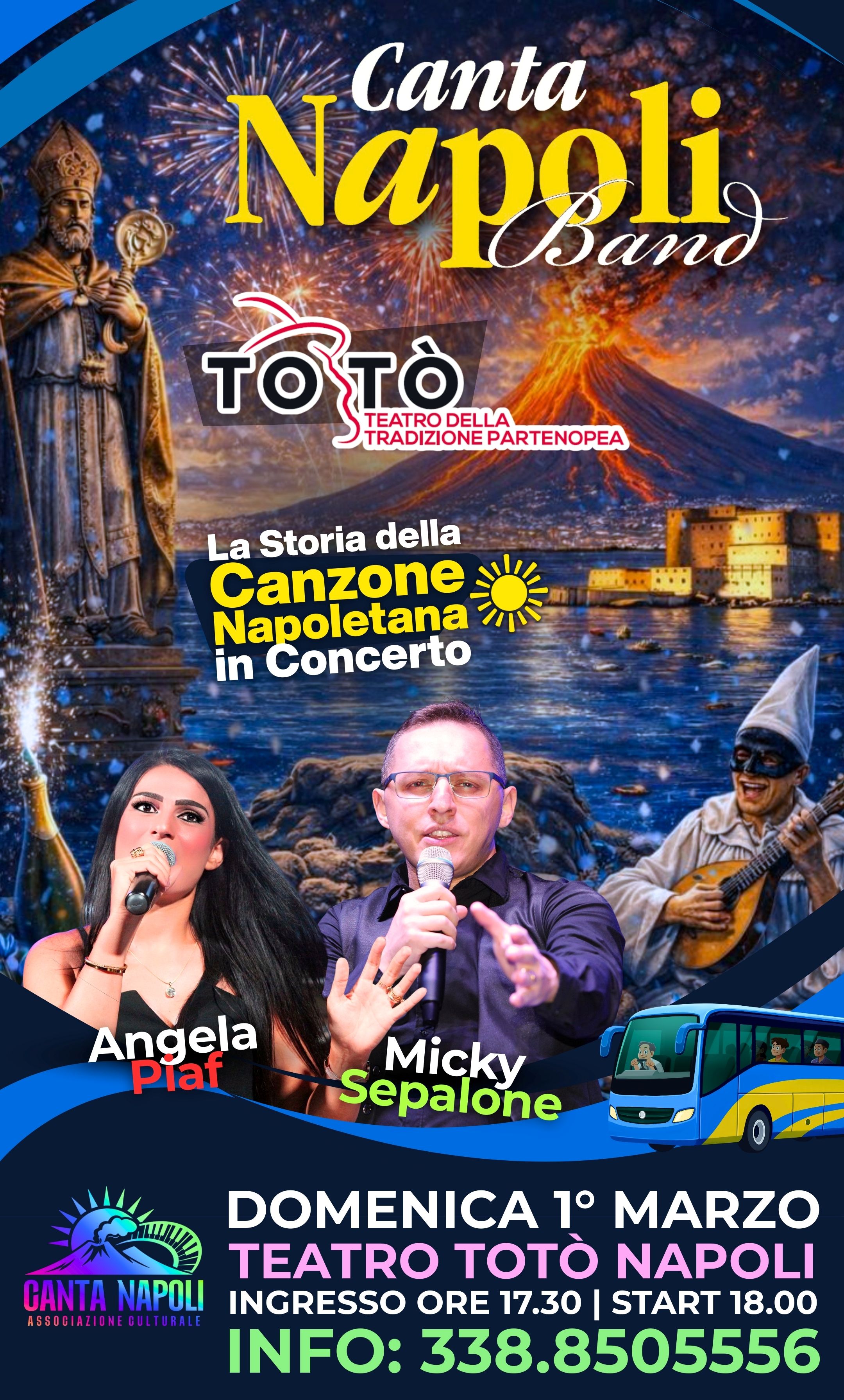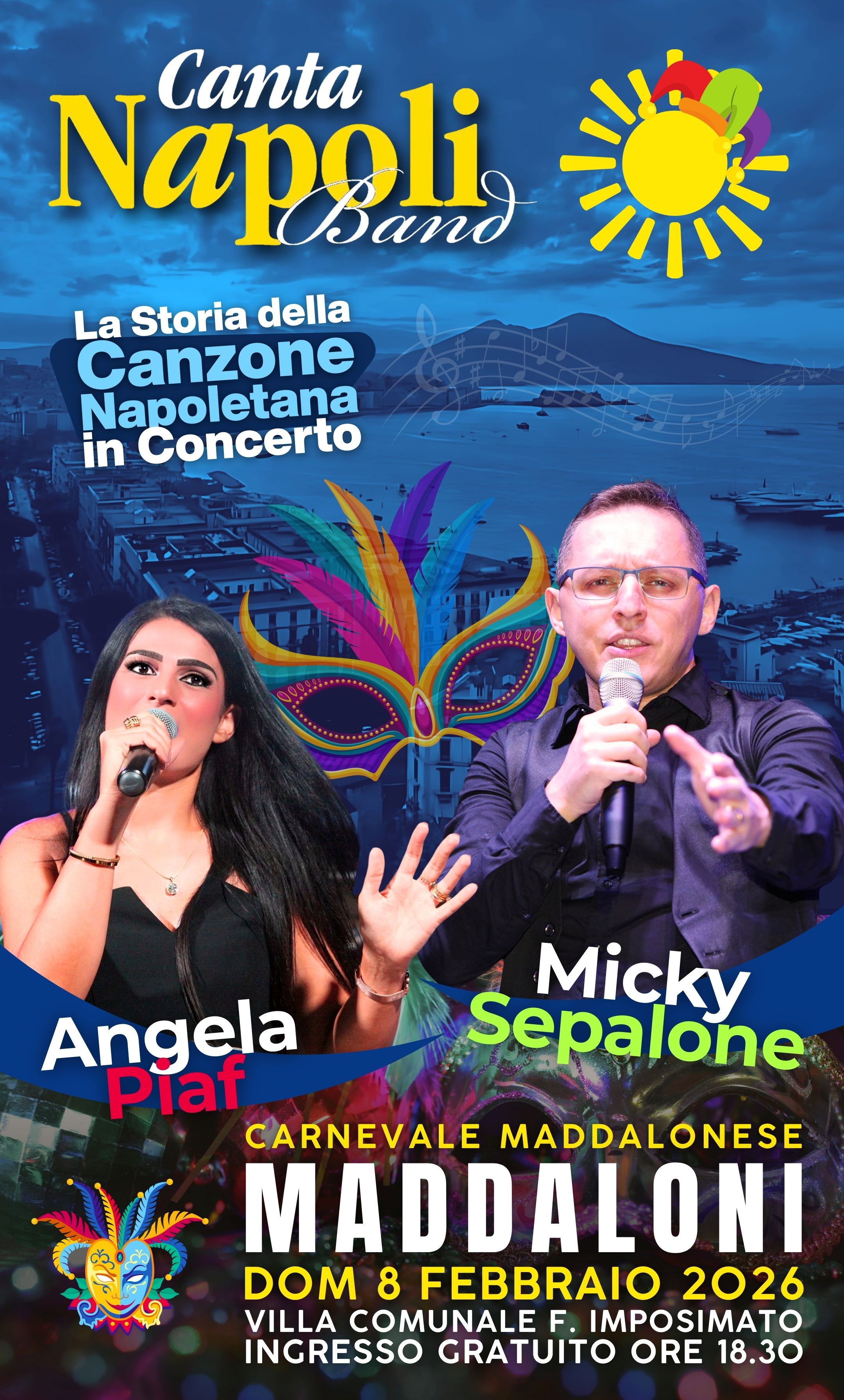 Micky Sepalone e Angela Piaf presentano Canta Napoli 3.0, un capitolo tutto nuovo che trasforma il classico tributo alla tradizione in una vera e propria sfida al futuro. Non si tratta solo di un aggiornamento, ma di un salto evolutivo che nasce dalla voglia costante di sperimentare e non restare mai fermi. In questa nuova release, i brani che tutti amiamo vengono riarrangiati in modo inedito e audace, capaci di vestire la melodia napoletana con sonorità moderne e internazionali che sorprendono fin dalla prima nota. La scaletta è stata completamente riscritta per creare un flusso narrativo dinamico, un viaggio musicale senza pause dove l'innovazione incontra il calore della nostra terra. Ma la vera anima di questo upgrade siete voi: Micky e Angela hanno immaginato questo show come un’opera collettiva, è il pubblico a fare il concerto con la band. La barriera tra palco e platea si sgretola, trasformando ogni live in un’esperienza condivisa dove la vostra energia e le vostre voci diventano lo strumento più importante di tutti. È un invito a riscoprire la Storia della Canzone Napoletana con orecchie nuove, sentendosi parte integrante di una rivoluzione sonora senza fine.